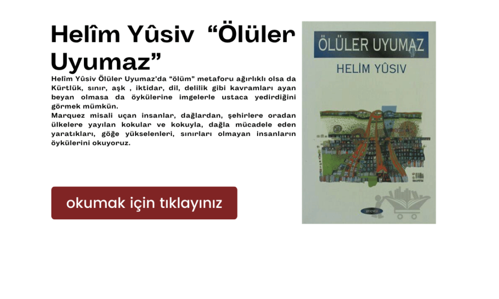 Helîm Yûsiv Ölüler Uyumaz’da “ölüm” metaforu ağırlıklı olsa da Kürtlük, sınır, aşk , iktidar, dil, delilik gibi kavramları ustaca kullanmıştır. Marquez misali uçan insanlar, dağlardan, şehirlere oradan ülkelere yayılan kokular ve kokuyla, dağla mücadele eden yaratıkları, göğe yükselenleri, sınırları olmayan insanların öykülerini okuyoruz. ÖLÜLER UYUMAZ Ölüler Uyumaz iki kısımdan ve toplam on öyküden oluşmaktadır. Ölüler Güzeldir … Helîm Yûsiv – Ölüler Uyumaz okumayı sürdür