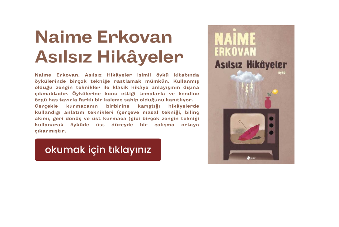 *Naime Erkovan, Asılsız Hikâyeler – Şule Yayınları Sayfa118-119 Prospektüs Hikâyesi